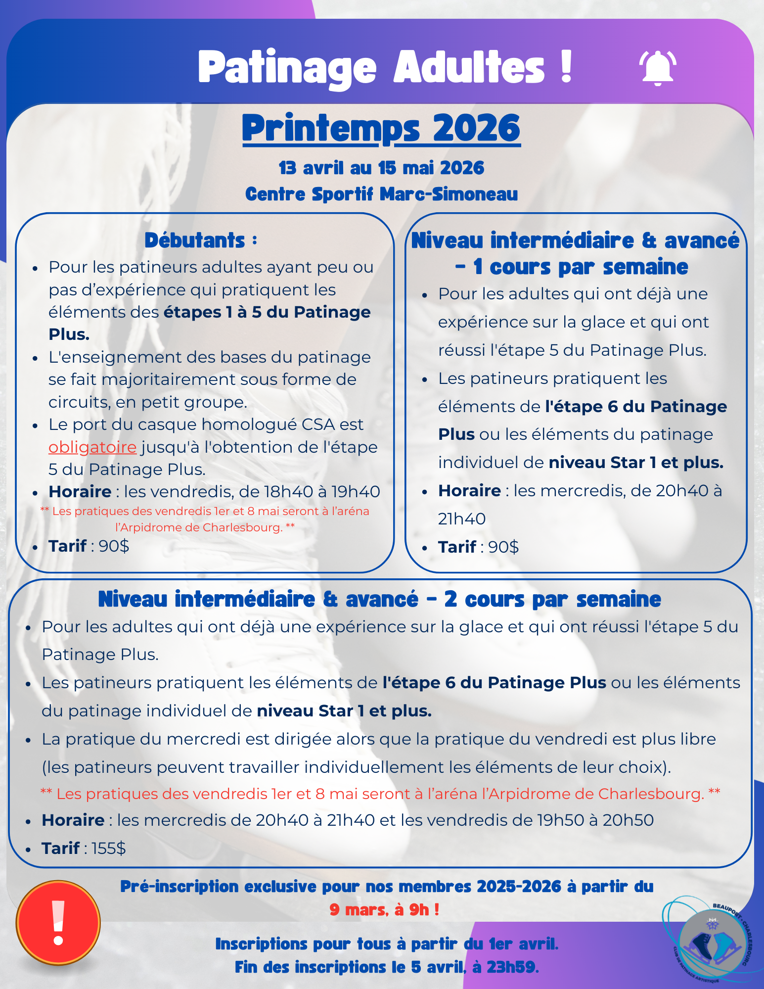 Si vous êtes un patineur de 22 ans et plus et que vous êtes non-résident de la Ville de Québec,